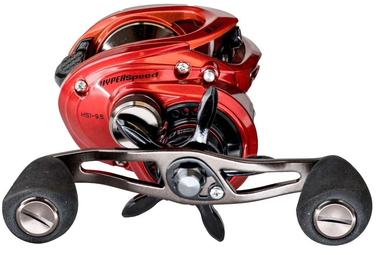 One of the fastest reels in the Lews lineup, the Lews Hyperspeed LFS Baitcasting Reels offer a 9.5:1 gear ratio with 40 inches per handle turn. Whether your burning spinnerbaits or need to muscle fish out of cover, its lighting fast retrieve is ready to turn and burn. A lightweight, one-piece aluminum frame and slide plate houses its hard anodized aluminum alloy Speed Gears, giving this reel the strength and durability for years to come. Ten stainless steel double-shielded ball bearings greased with Speed Lube provide for an extremely smooth, fined tuned system and along with its 95mm handle with EVA knobs this reel is pleasant to use all day. Simply put, for the angler who needs a screaming fast and durable reel option, look to the Lews Hyperspeed LFS Baitcasting Reels. .