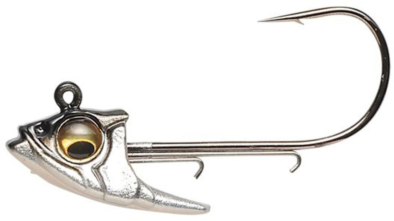 The Megabass Body Balance Jig Head is purpose built to allow you to fish soft plastic swimbaits to their fullest potential. The shape of the Body Balance’s head features a low center of gravity design that will help keep swimbaits running true to give off a stable swimming action. This design is especially effective when dealing with finicky or pressured fish that will hesitate to commit to baits with inconsistencies in swimming action. The keel shaped bottom end of the head will add a subtle roll to your presentation and also acts as a skid-plate when the jig makes contact with the bottom or structure. This allows for easy deflection of cover and minimizes hang-ups. These jigs are fitted with realistic 3D eyes and a double barbed bait keeper on the hook shank to securely hold swimbaits in place, allowing you to make long casts without having to worry about losing baits.