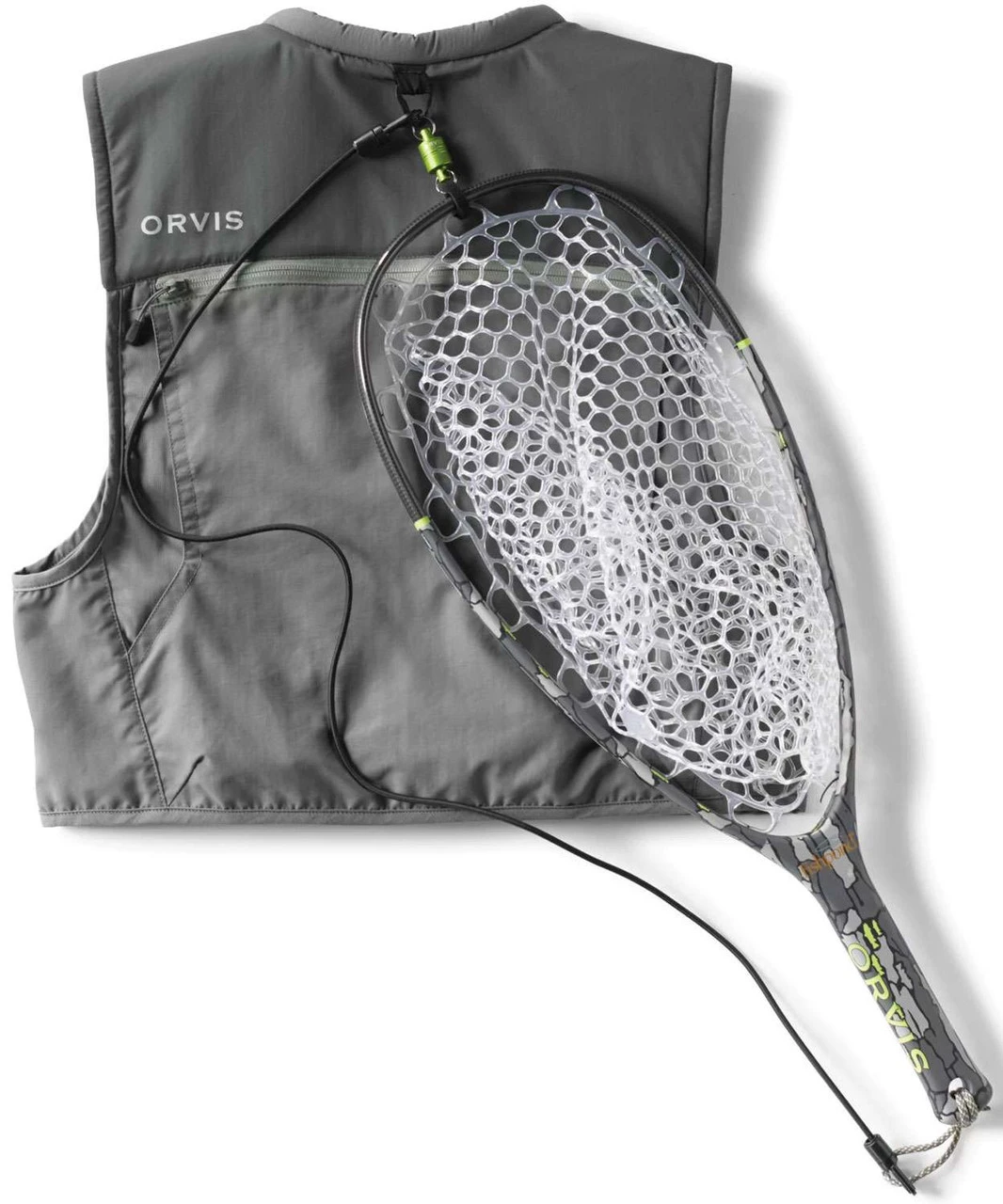 The Orvis Magnetic Net Release features heavy-duty hook-and-loop strap that allows you the option of securing the net by the loop instead of the handle. The upgraded bungee and split ring clips are highly durable and are great for securing your net to a pack or wading vest.