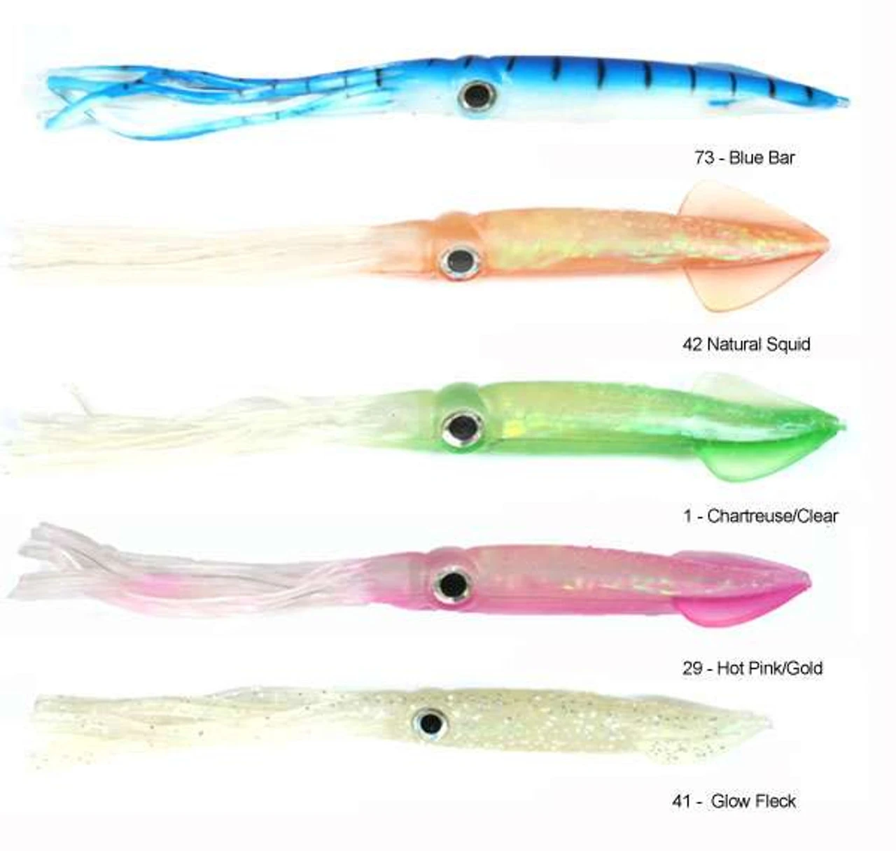 | Color | 1-Chartreuse/Clear, 29-Hot Pink/Gold, 41-Glow Fleck, 42-Natural Squid |